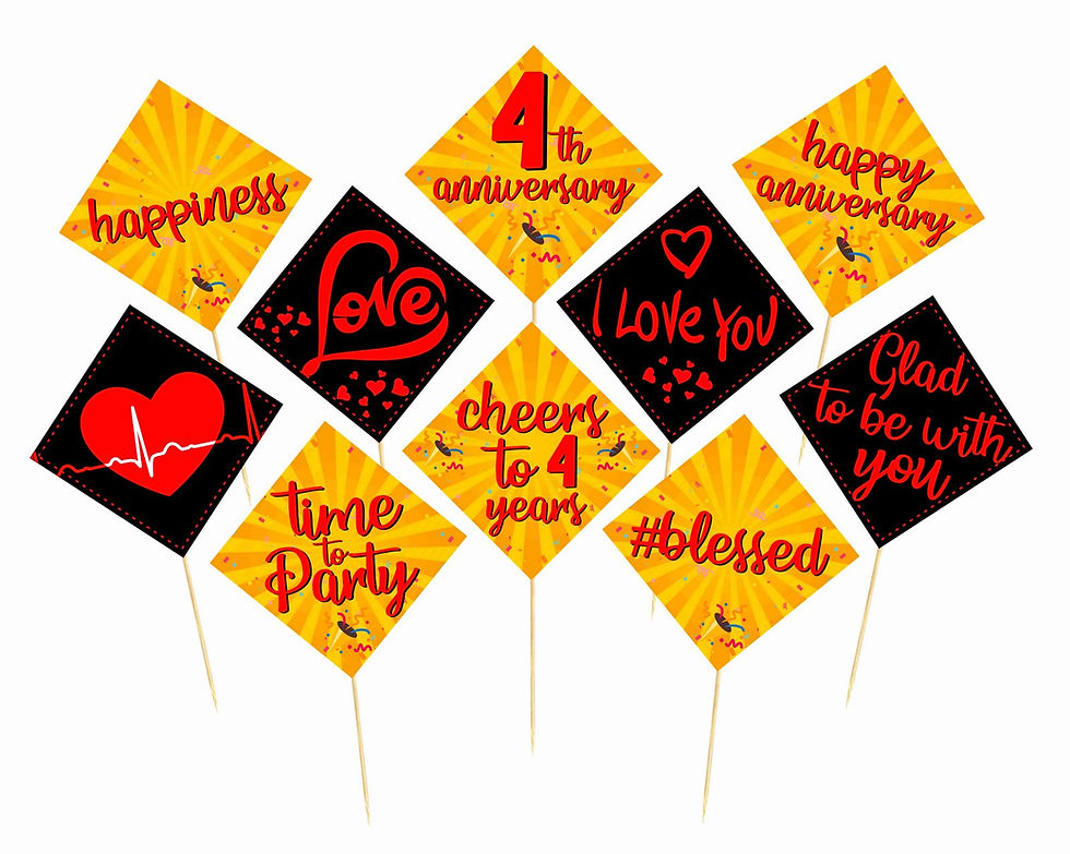 4th Anniversary Photo Props for Party Photo Booth - Pack of 10
